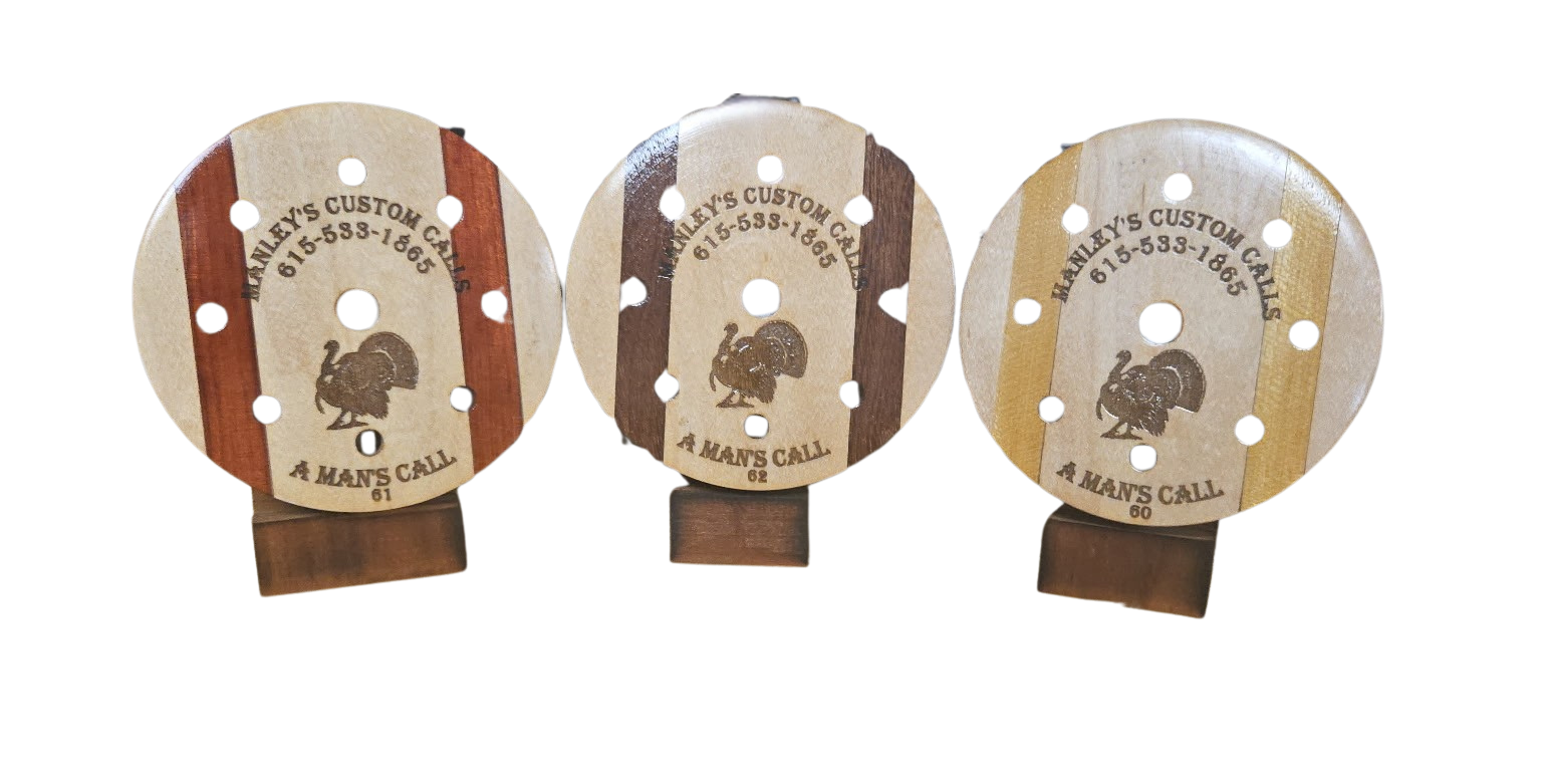 Crafted with precision, this 4" Pot Turkey Call features a durable maple body accented with Red Heart, Yellow Heart, or Sapele wood. The slate surface over glass ensures clear, realistic turkey sounds, while each call is expertly matched with a striker for optimal performance.